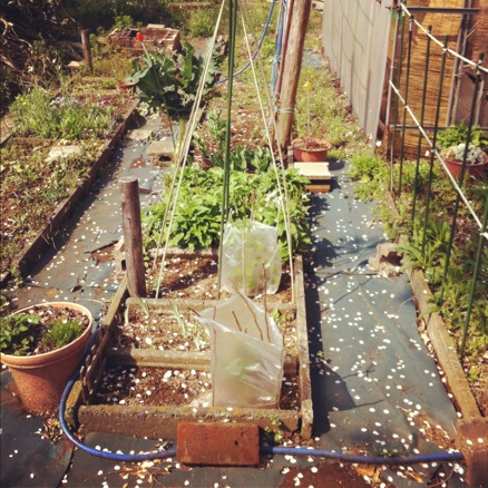 夏場のグリーンカーテン用に種を蒔いてみました、ポットに。